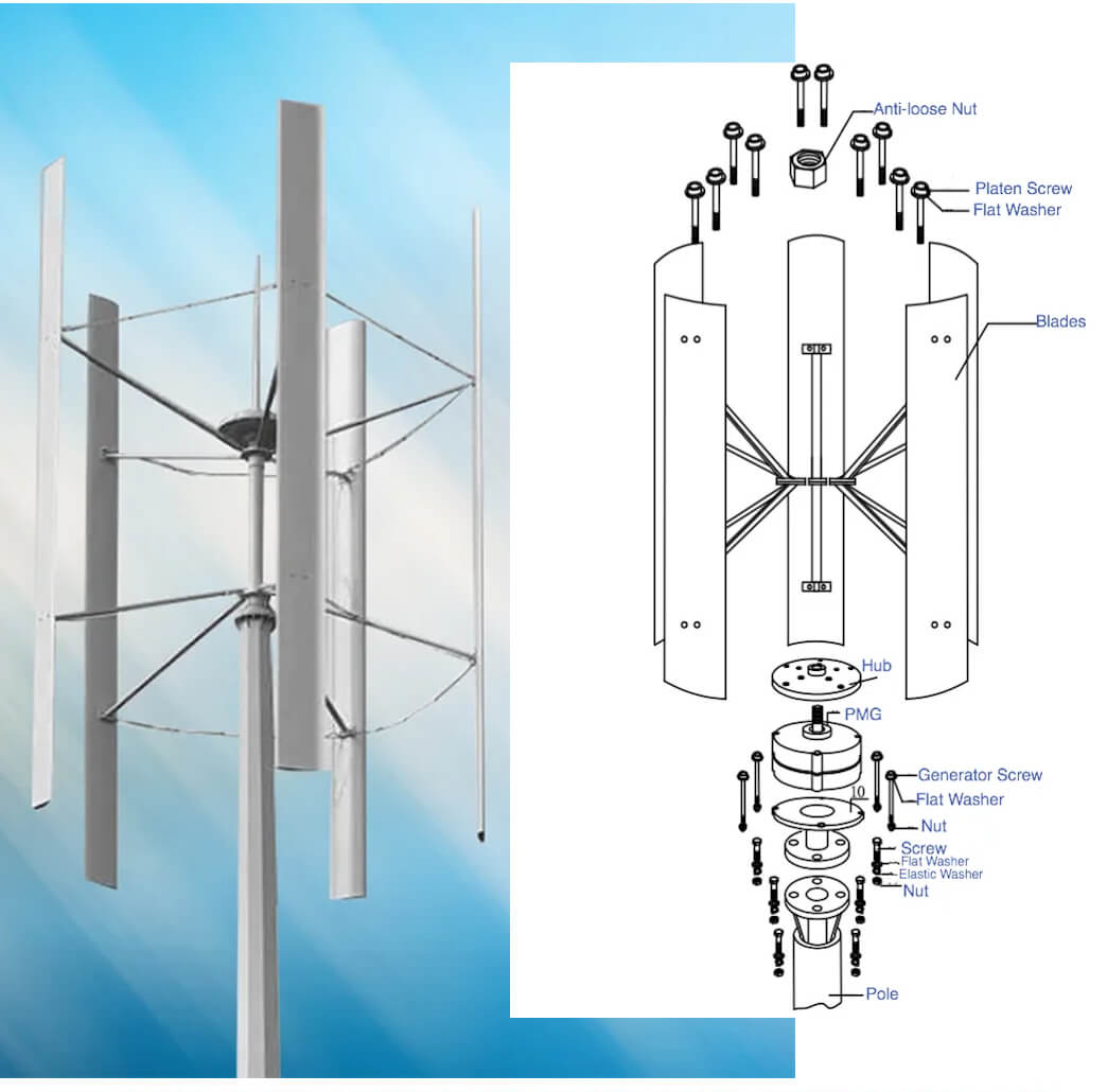 2. A special wind impeller with auxiliary kinetic energy is added to the central part, which reduces the starting wind speed and improves the wind energy conversion rate